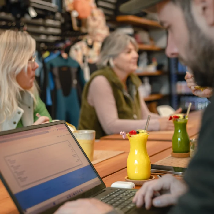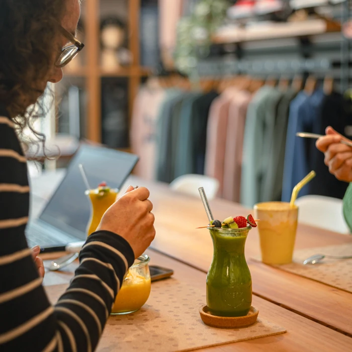 Enjoy healthy snacks, delicious coffee, bowls, smoothies, and energy balls while you work focused or connect with others.