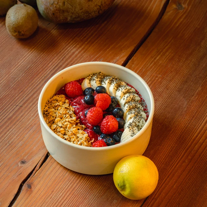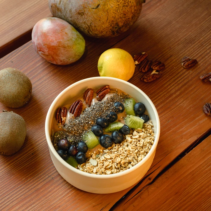We offer a selection of healthy drinks and food to support your workday. Our range includes fresh smoothies, kombucha, lemonades, house-made bowls and energy balls, as well as high-quality coffee. All items are prepared with care and are ideal for a balanced break during work.